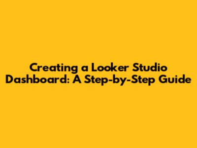 Creating A Looker Studio Dashboard: A Step-by-Step Guide